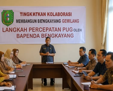 Susun pedoman teknis PUG khusus BAPENDA, seperti integrasi gender ke dalam kebijakan pajak, retribusi, dan pengelolaan pendapatan daerah, berdasarkan regulasi nasional seperti Inpres No. 9/2000 dan Permendagri tentang pengelolaan keuangan daerah. Ajukan ke Bupati/Sekda untuk pengesahan sebagai Peraturan/Keputusan Sekda atau Petunjuk Teknis (Juknis), mencakup 7 proses pembangunan (perencanaan hingga pelaporan).